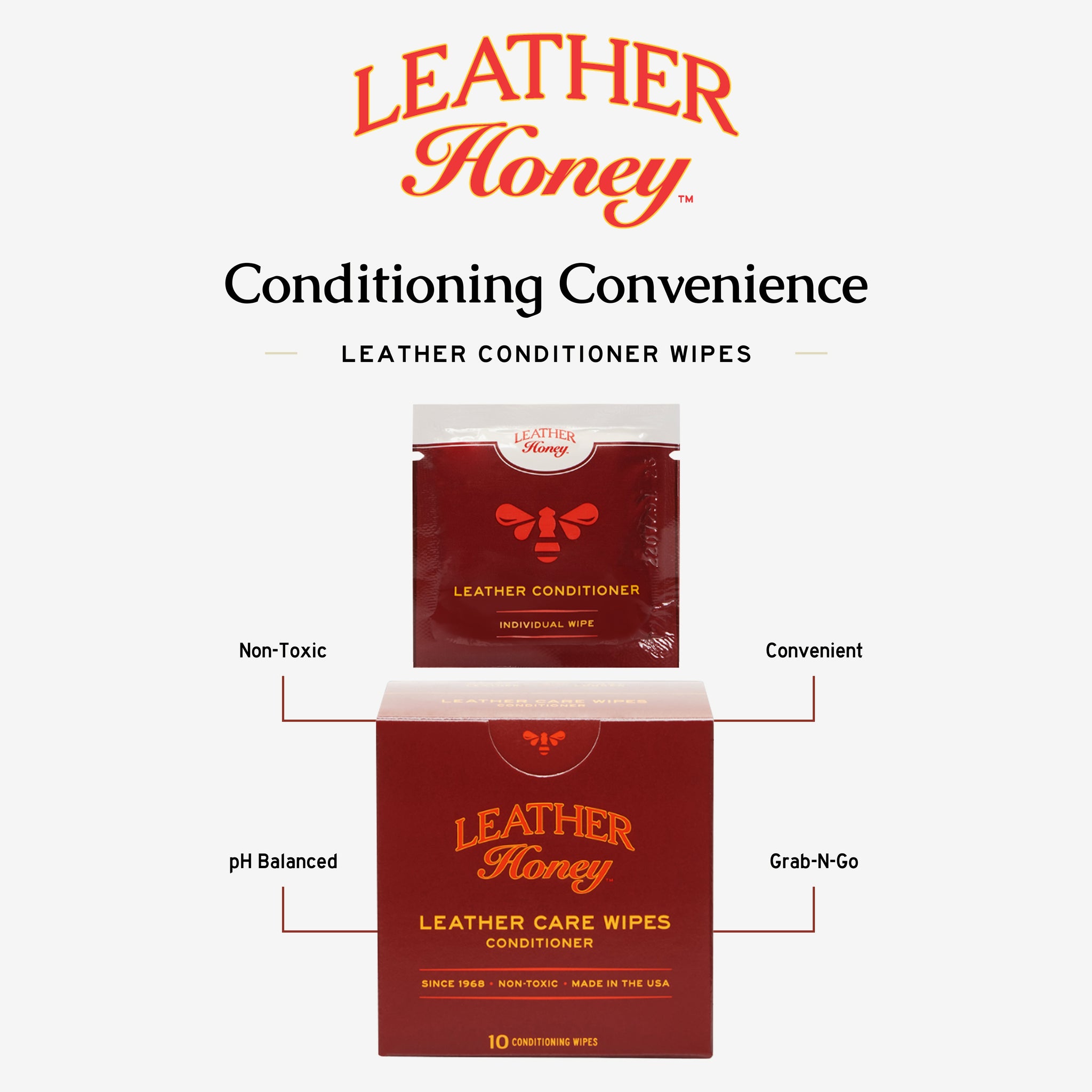 {"id":8004986536248,"title":"Leather Care Wipes (10 Pack)","handle":"leather-care-wipes","description":"\u003cp\u003eOur best-selling, trusted leather conditioner and leather cleaner formulas, now in convenient wipes! \u003cmeta charset=\"utf-8\"\u003eUnlike other brands, Leather Honey’s wipes are individually packaged to ensure they won’t dry out. \u003cmeta charset=\"utf-8\"\u003eKeep these easy-to-use wipes in your car to use on the go, or throw a wipe in your bag to quickly remove unexpected stains or restore your leather to keep it looking like new. Leather Honey Leather Care wipes come in three options: \u003c\/p\u003e\n\u003cp\u003e\u003cstrong\u003eLeather Honey Leather Cleaner Wipes:\u003c\/strong\u003e \u003cspan style=\"font-weight: 400;\"\u003eOur gentle and effective leather cleaner formula, already infused into 10 durable, two-sided, convenient towelettes. \u003cmeta charset=\"utf-8\"\u003eThe thick, premium wipes have a unique texture that quickly and effectively deep cleans any leather item, including car seats, leather jackets and coats, shoes, leather furniture and more. Like our leather cleaner, these leather cleaning wipes are also for use on vinyl, plastic, rubber and faux leather. \u003c\/span\u003e\u003c\/p\u003e\n\u003cp\u003e\u003cspan style=\"font-weight: 400;\"\u003e\u003cmeta charset=\"utf-8\"\u003e \u003cstrong\u003eLeather Honey Leather Conditioner Wipes: \u003c\/strong\u003e\u003cspan\u003eOur time-tested, premium leather conditioner, conveniently infused into 10 durable, two-sided conditioning wipes to keep your leather looking new. Quickly restore, soften and protect all types and colors of leather but suede, including car seats, couches and furniture, wallets, handbags, boots, jackets and more. \u003c\/span\u003eLeather Honey’s thick, premium wipes allow you to quickly and conveniently apply our rich, non-toxic leather conditioner to any leather item in minutes.\u003c\/span\u003e\u003c\/p\u003e\n\u003cp\u003e\u003cstrong\u003eLeather Honey Leather Care Wipes Combo Pack: \u003c\/strong\u003eC\u003cstrong\u003e\u003cspan style=\"font-weight: 400;\" data-mce-fragment=\"1\" data-mce-style=\"font-weight: 400;\"\u003eombination package contains 5 conditioning wipes and 5 textured cleaning wipes — everything you need to quickly and easily clean and condition your leather. \u003c\/span\u003e\u003c\/strong\u003e\u003c\/p\u003e\n\u003cp\u003e\u003cbr\u003e\u003c\/p\u003e","published_at":"2022-12-19T09:13:04-05:00","created_at":"2022-11-16T10:49:05-05:00","vendor":"Leather Honey","type":"Leather Care","tags":["Main Nav"],"price":1399,"price_min":1399,"price_max":1399,"available":true,"price_varies":false,"compare_at_price":1799,"compare_at_price_min":1799,"compare_at_price_max":1799,"compare_at_price_varies":false,"variants":[{"id":44055915462968,"title":"Leather Cleaner \u0026 Conditioner Wipes: Foil Wrapped","option1":"Leather Cleaner \u0026 Conditioner Wipes: Foil Wrapped","option2":null,"option3":null,"sku":"LHWIPE55","requires_shipping":true,"taxable":true,"featured_image":{"id":40029214474552,"product_id":8004986536248,"position":1,"created_at":"2022-12-09T16:21:13-05:00","updated_at":"2025-01-28T18:42:12-05:00","alt":null,"width":1364,"height":1364,"src":"\/\/www.leatherhoney.com\/cdn\/shop\/products\/22-09-Stable-LEA-011.jpg?v=1738107732","variant_ids":[44055915462968]},"available":true,"name":"Leather Care Wipes (10 Pack) - Leather Cleaner \u0026 Conditioner Wipes: Foil Wrapped","public_title":"Leather Cleaner \u0026 Conditioner Wipes: Foil Wrapped","options":["Leather Cleaner \u0026 Conditioner Wipes: Foil Wrapped"],"price":1399,"weight":45,"compare_at_price":1799,"inventory_quantity":30,"inventory_management":"shopify","inventory_policy":"deny","barcode":"857834002157","featured_media":{"alt":null,"id":32357290705208,"position":1,"preview_image":{"aspect_ratio":1.0,"height":1364,"width":1364,"src":"\/\/www.leatherhoney.com\/cdn\/shop\/products\/22-09-Stable-LEA-011.jpg?v=1738107732"}},"requires_selling_plan":false,"selling_plan_allocations":[]},{"id":44055895834936,"title":"Leather Cleaner Wipes: 10 Foil Wrapped","option1":"Leather Cleaner Wipes: 10 Foil Wrapped","option2":null,"option3":null,"sku":"LHCLNWIPE","requires_shipping":true,"taxable":true,"featured_image":{"id":40029208445240,"product_id":8004986536248,"position":2,"created_at":"2022-12-09T16:19:33-05:00","updated_at":"2024-11-19T12:32:32-05:00","alt":null,"width":1346,"height":1346,"src":"\/\/www.leatherhoney.com\/cdn\/shop\/products\/22-09-Stable-LEA-006_1.jpg?v=1732037552","variant_ids":[44055895834936]},"available":true,"name":"Leather Care Wipes (10 Pack) - Leather Cleaner Wipes: 10 Foil Wrapped","public_title":"Leather Cleaner Wipes: 10 Foil Wrapped","options":["Leather Cleaner Wipes: 10 Foil Wrapped"],"price":1399,"weight":113,"compare_at_price":1799,"inventory_quantity":30,"inventory_management":"shopify","inventory_policy":"deny","barcode":"857834002195","featured_media":{"alt":null,"id":32357284643128,"position":2,"preview_image":{"aspect_ratio":1.0,"height":1346,"width":1346,"src":"\/\/www.leatherhoney.com\/cdn\/shop\/products\/22-09-Stable-LEA-006_1.jpg?v=1732037552"}},"requires_selling_plan":false,"selling_plan_allocations":[]},{"id":44055915430200,"title":"Leather Conditioner Wipes: 10 Foil Wrapped","option1":"Leather Conditioner Wipes: 10 Foil Wrapped","option2":null,"option3":null,"sku":"LHCONWIPE","requires_shipping":true,"taxable":true,"featured_image":{"id":40029212541240,"product_id":8004986536248,"position":3,"created_at":"2022-12-09T16:20:51-05:00","updated_at":"2024-11-19T12:31:45-05:00","alt":null,"width":1346,"height":1346,"src":"\/\/www.leatherhoney.com\/cdn\/shop\/products\/22-09-Stable-LEA-001_2.jpg?v=1732037505","variant_ids":[44055915430200]},"available":true,"name":"Leather Care Wipes (10 Pack) - Leather Conditioner Wipes: 10 Foil Wrapped","public_title":"Leather Conditioner Wipes: 10 Foil Wrapped","options":["Leather Conditioner Wipes: 10 Foil Wrapped"],